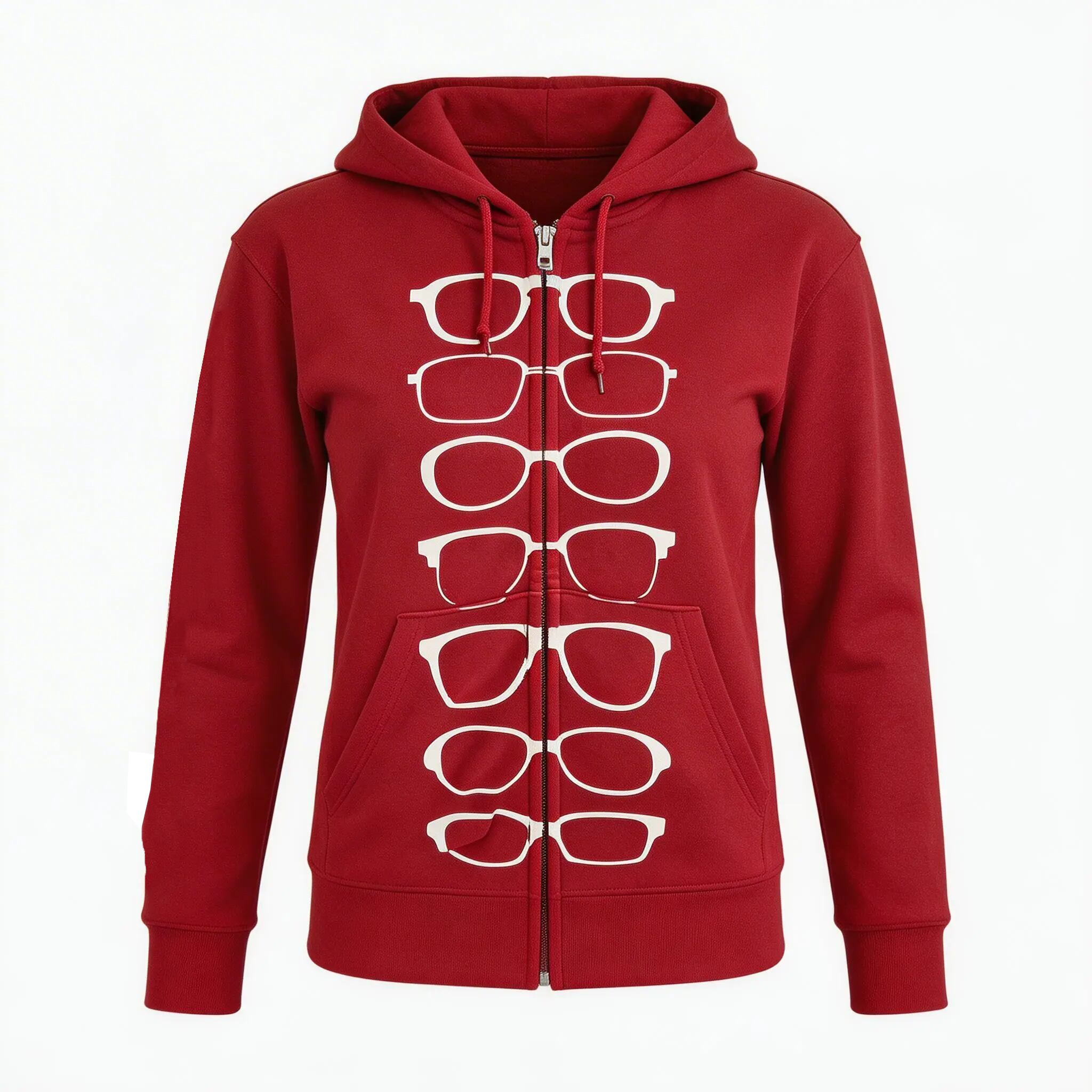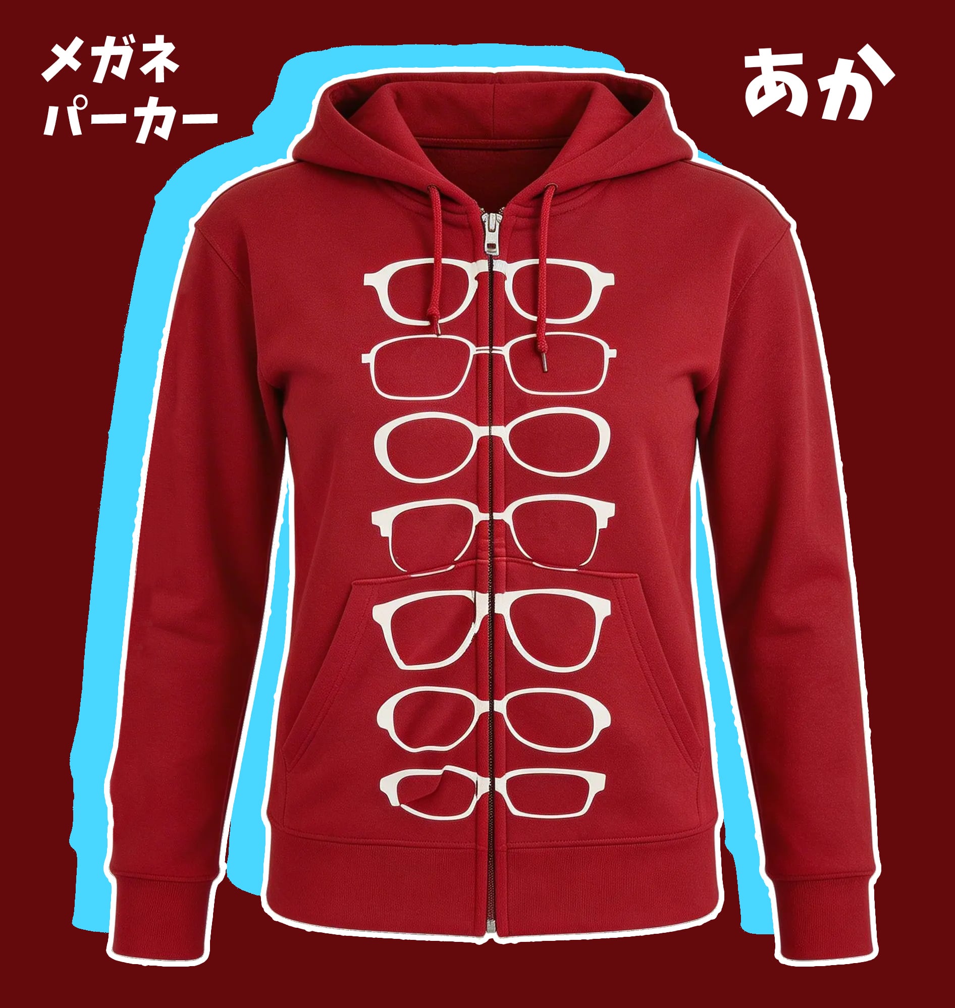 メガネcafe定番のメガネパーカー、華やかな「あか(えんじ)」